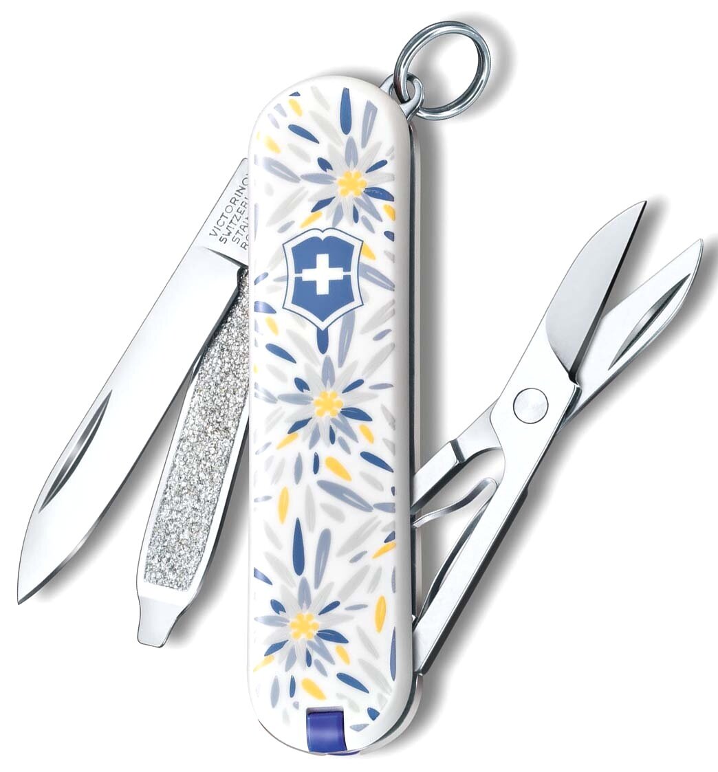 Лучшие цены. Инновационный Victorinox Classic Alpine Edelweiss из лимитированной коллекции 2021 года, является универсальным инструментом, который дает его хозяину возможность удобно хранить и пользоваться связкой ключей, кроме того данный брелок имеет набор инструментов, которые просто необходимы человеку в повседневной жизни. Носить постоянно с собой полнометражные инструменты, такие как нож, пилочка для ногтей, ножницы, пинцет, отвертка достаточно обременительно, а наличие миниатюрного набора очень удобно и практично. Магазины в вашем городе.