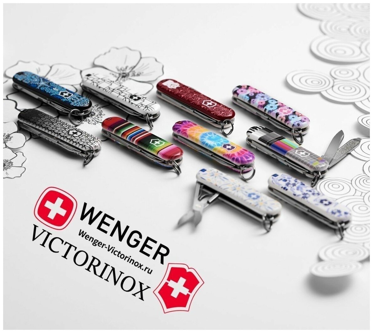 Нож-брелок VICTORINOX Classic 0.6223.L2103 "Tie Dye", 58 мм, 7 функций, лезвие и инструменты из нержавеющей стали, рукоять из пластика Cellidor