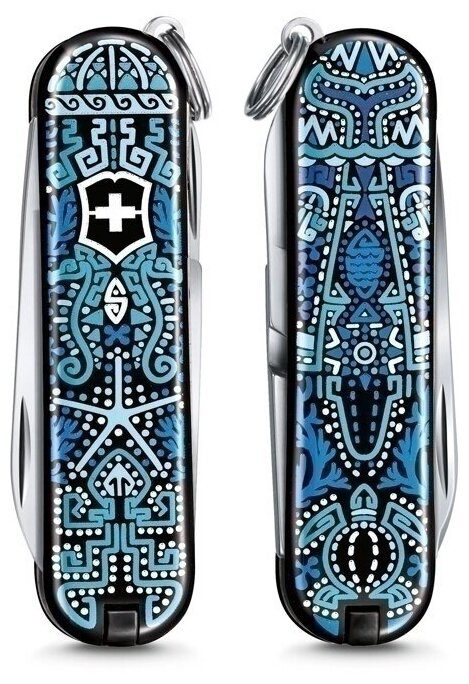 Лучшие цены. Швейцарский Нож-брелок VICTORINOX Classic " Ocean Life", длина лезвия 4 см, 7 функций, лезвие и инструменты из нержавеющей стали, рукоять из пластика Cellidor Victorinox представила новую лимитированную серию миниатюрных складных ножей. В 2021 году новая тема — «Patterns of the World», которая включает в себя 10 оригинальных дизайнов от художников со всего света. Каждый нож выпущен ограниченным тиражом и будет радовать уникальной необычной расцветкой и, как всегда, широким отличным функционалом. Магазины в вашем городе.