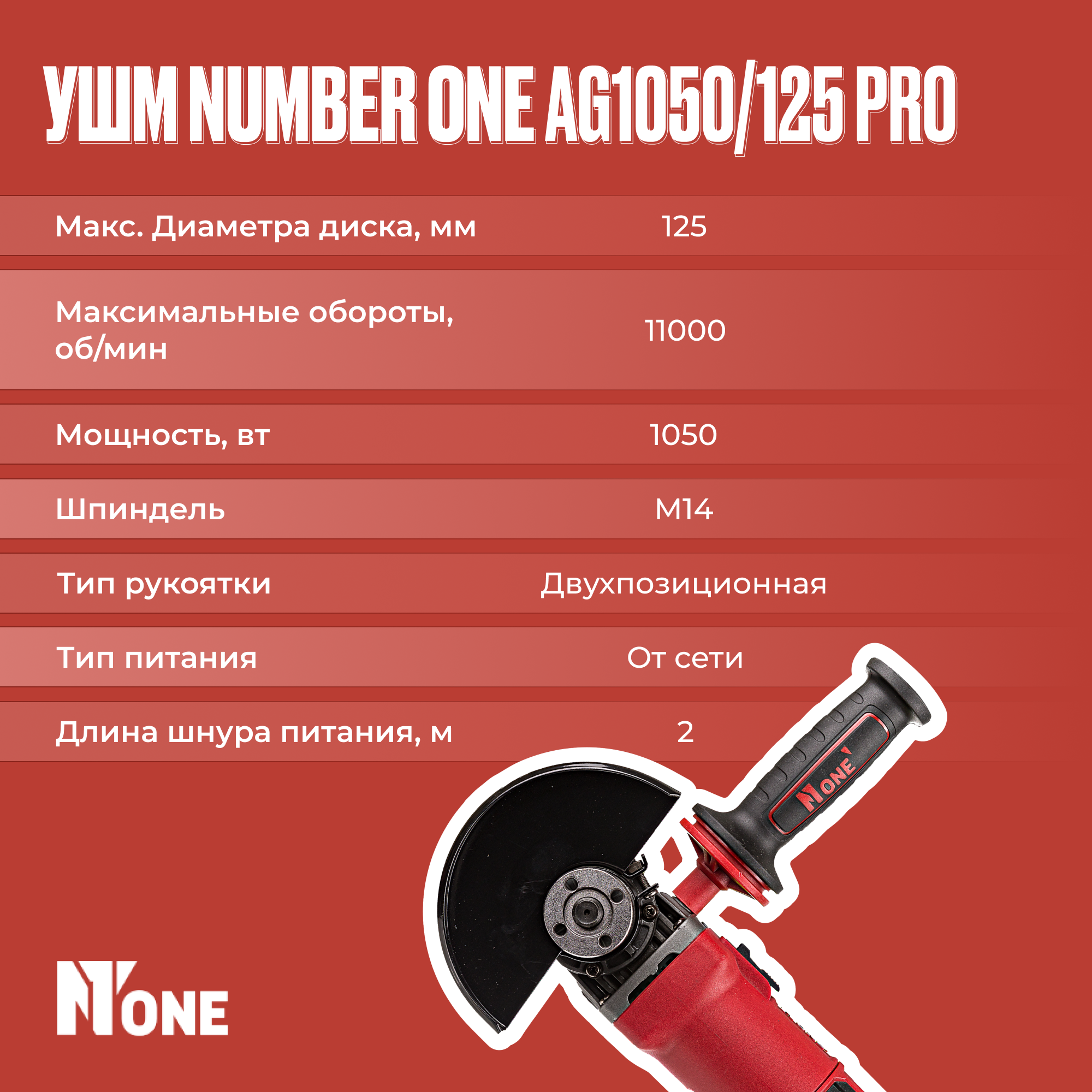 Угловая шлифмашина Number One AG1050/125-PRO (1050 Вт, 125 мм, без ПП, без РО)