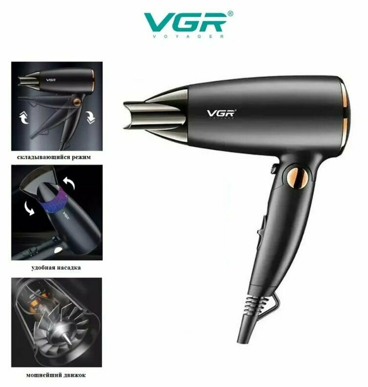 Фен для волос VGR V-432 с насадкой, складная ручка, компактный, дорожный 11 000 ₽ Подробнее
