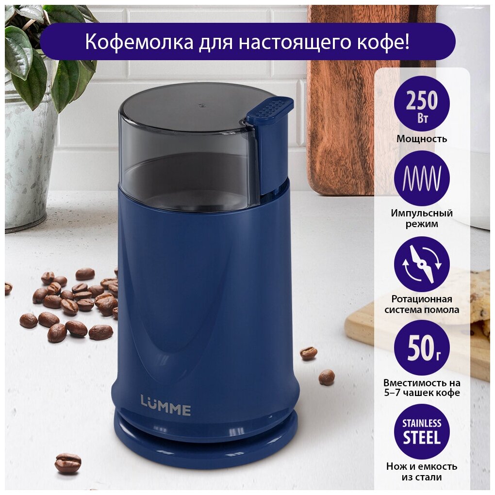 Кофемолка электрическая LUMME LU-2605 / 250 Вт / синий сапфир