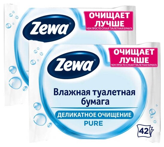Матрасы Влажная туалетная бумага Zewa Pure белая, 2 уп. 42 лист.