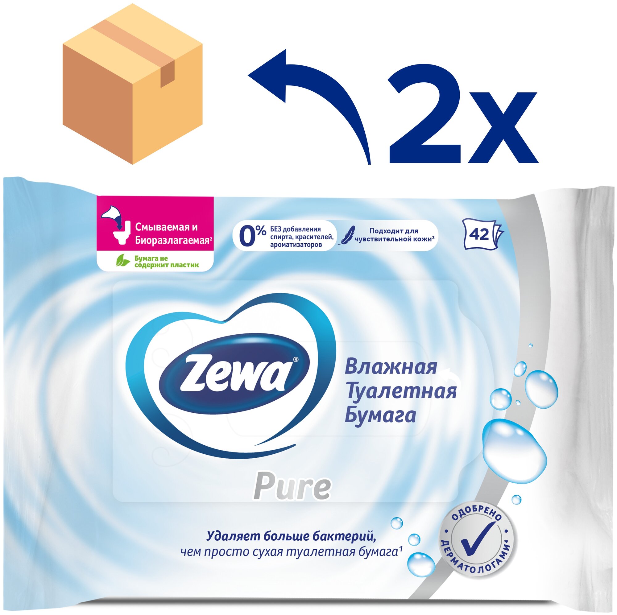 Набор 2 шт Zewa Pure - Влажная туалетная бумага