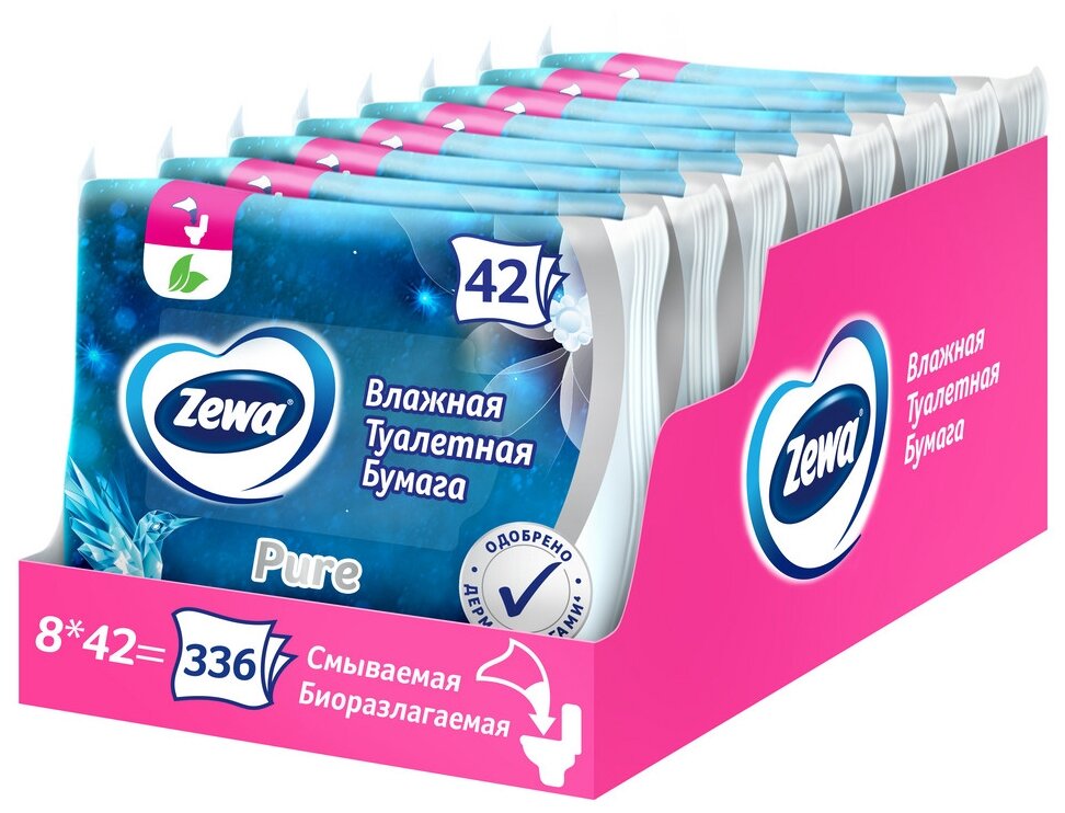 Туалетная бумага влажная Zewa Pure, 42 шт.