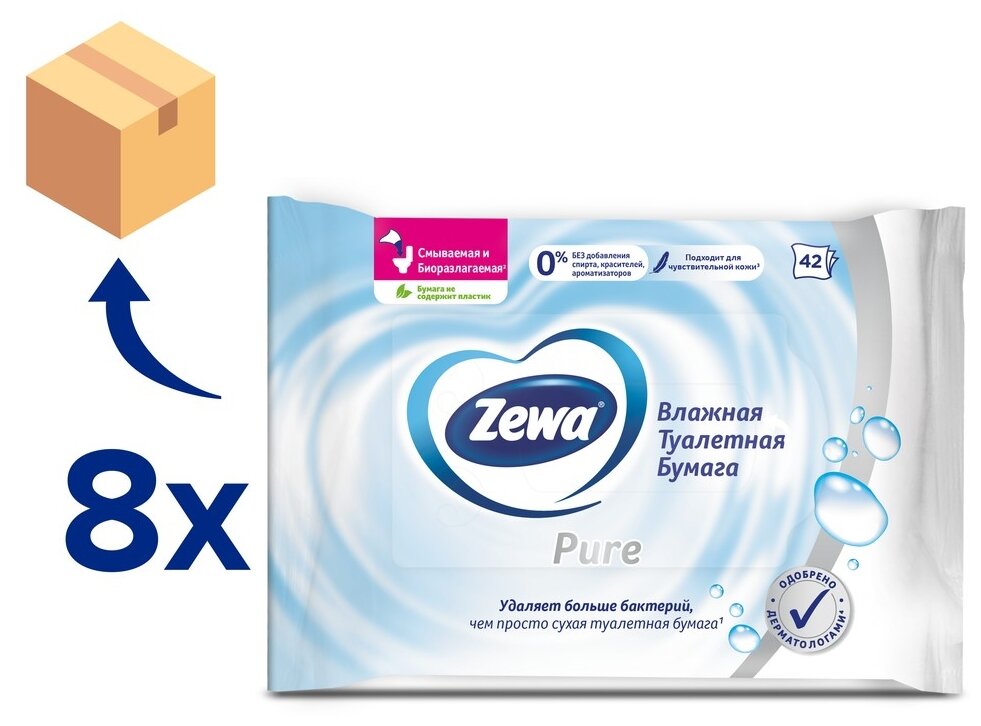 Матрасы Влажная туалетная бумага Zewa Pure белая, 8 уп. 42 лист.