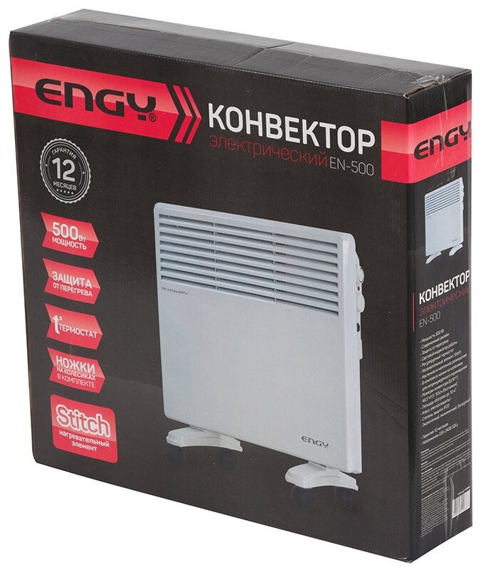 Обогреватель Engy EN-500 Standard, конвекторный, 500 Вт, 10 м?, Stitch, белый Engy 9428885 .