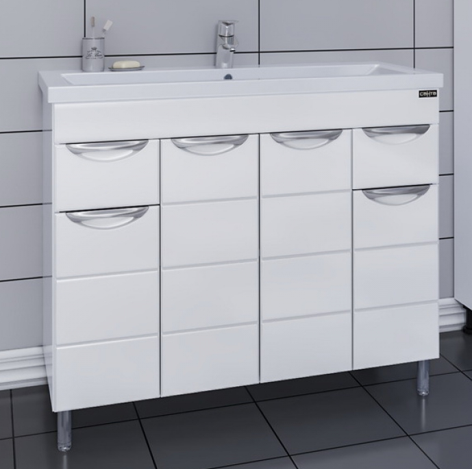 Тумба под раковину, для ванной комнаты с раковиной СаНта Родос 100 с 2 ящиками, ШхГхВ: 96.5х43.5х85 см, цвет: белый