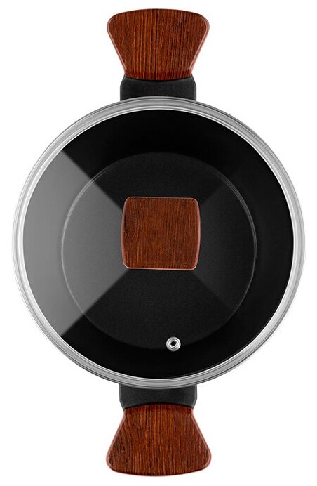 Лучшие цены. Дизайн стилизован под дерево. Посуда изготовлена из высококачественного кованого алюминия. Толщина алюминия 3.5 мм. Внутреннее высокопрочное утолщенное антипригарное покрытие Pfluon. Термостойкое внешнее покрытие. Эргономичные бакелитовые ручки с покрытием Soft Touch не нагреваются и не скользят. Крышка из жаропрочного стекла с отверстием для выпуска пара. Подходит для всех типов плит, включая индукцию. Надежная и удобная посуда для ежедневного использования. Легко мыть, приятно готовить. Магазины в вашем городе.