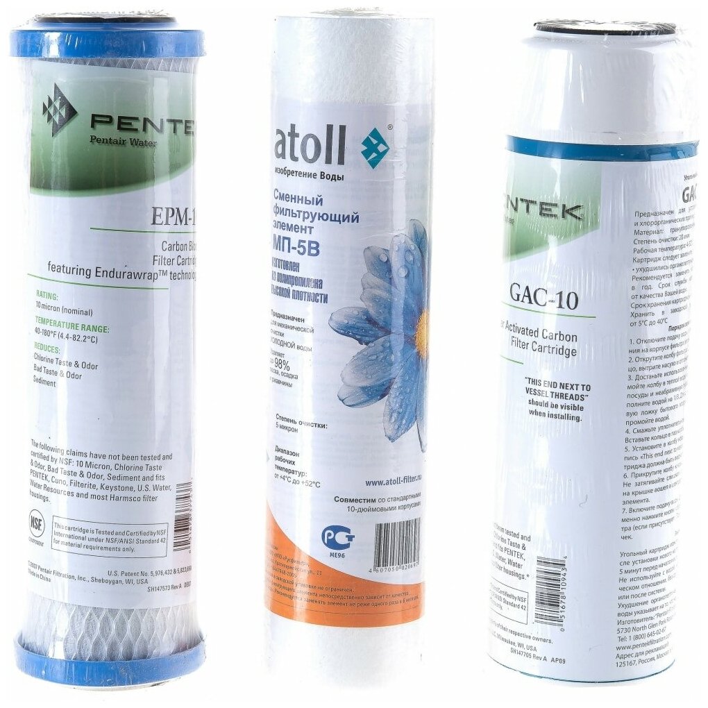 Лучшие цены. Набор картриджей Atoll №203 STD предназначен для замены использованных элементов в системах обратного осмоса - A-550E, A-560, A-560Е, A560Em, A-560Ecp, A-575, A-575E, A-575Em, A-575Ecp (для сильно хлорированной воды, удаление запаха хлора) Содержит три предфильтра. Рекомендуемый срок замены: 6 месяцев. Набор картриджей Atoll №203 STD содержит: Картридж Pentair (Pentek) P5 (полипропилен) для очистки воды от механических примесей. Обладает высокой устойчивостью к воздействию бактерий и химикатов. Магазины в вашем городе.