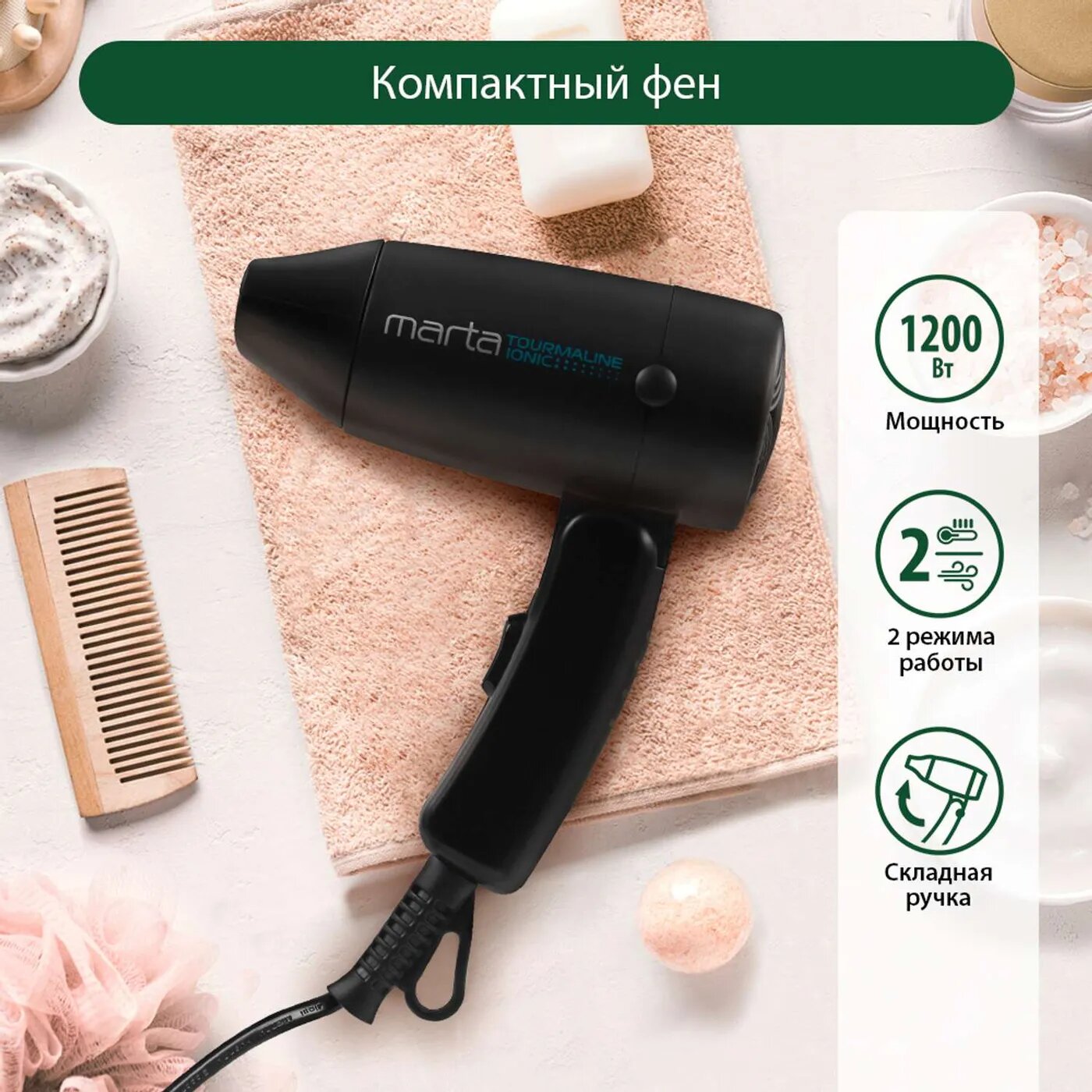 Лучшие цены. MAX 1200W технология турмалин ИОН, 2 режима работы, концентратор, складная ручка, автоотключение при перегреве, петелька для подвешивания. Магазины в вашем городе.