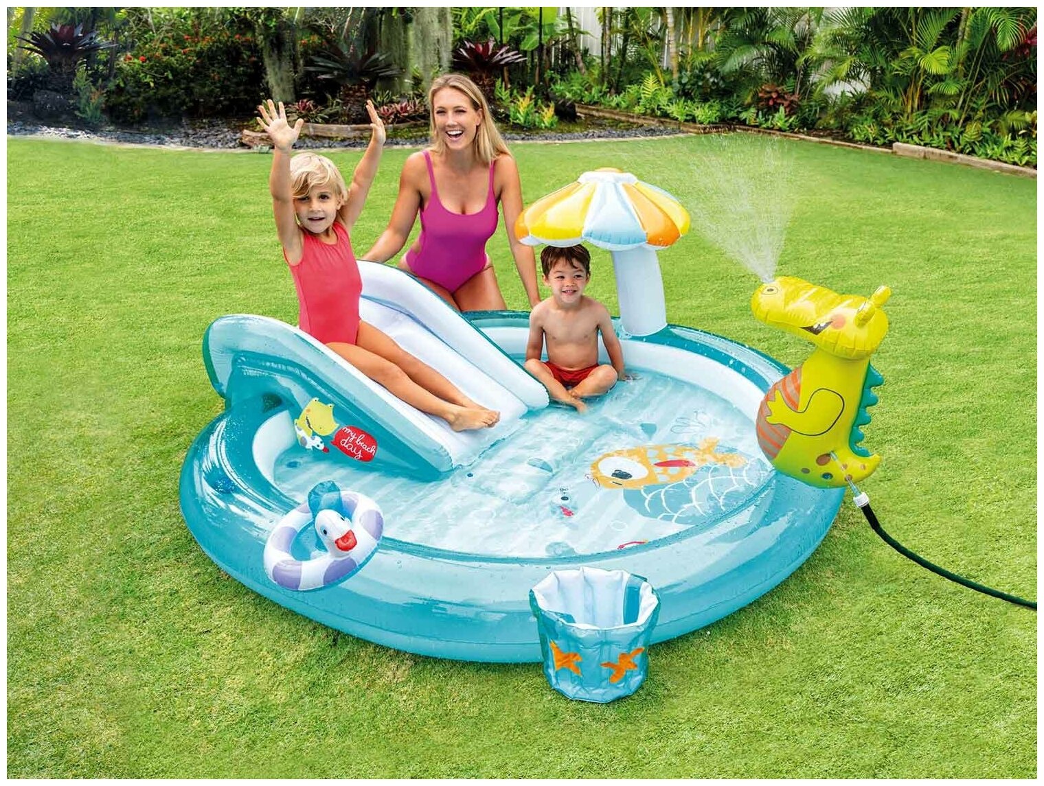 Игровой центр-бассейн INTEX "Аллигатор" с горкой, распылителем 57165