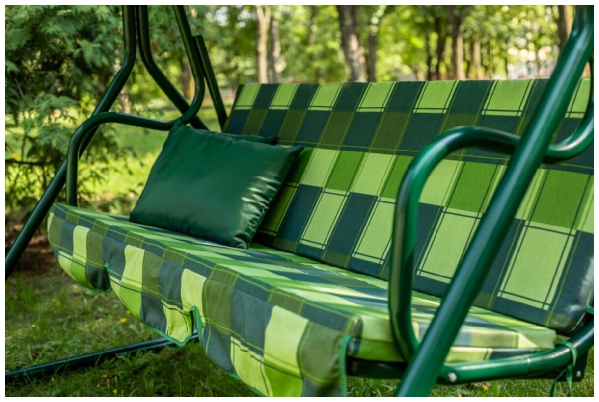 Качели садовые 3-х местные Ольса Фьюджи каркас зеленый, ткань зеленая клетка