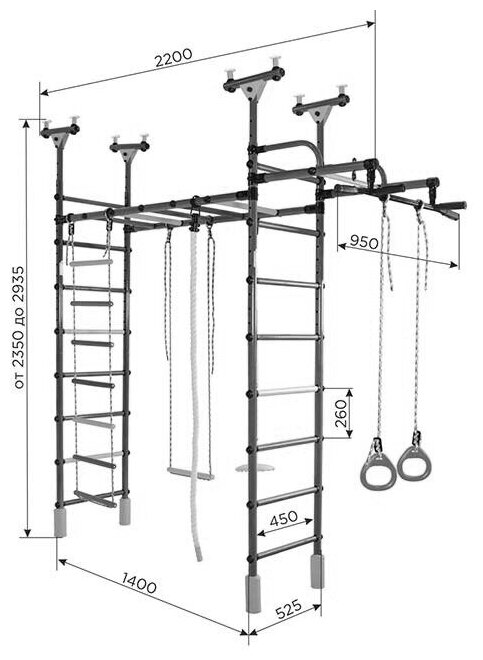 | Ширина | 95 см (по турнику; 52.5 см / по лестнице) |