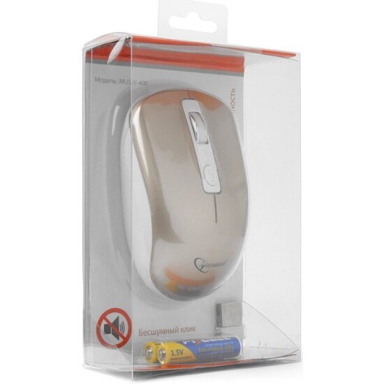 Мышь беспроводная бесшумная GEMBIRD MUSW-400-G, 3 кнопки+1 колесо-кнопка, оптическая, бело-золотая - 1 шт.