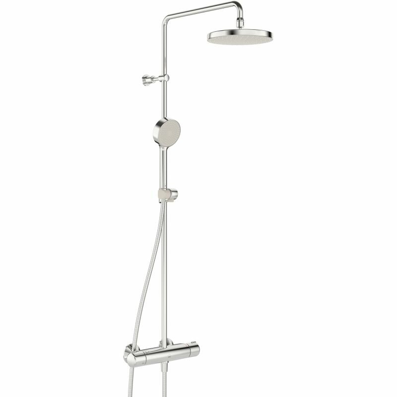 Лучшие цены. Тип устройства: душевая стойка; Смеситель в комплекте: есть; Принцип работы смесителя: двухрычажный; Назначение: для душа; Термостат: есть; Покрытие: хром; Держатель для душевой лейки: штанга; Количество режимов верхнего душа: 1. Магазины в вашем городе.