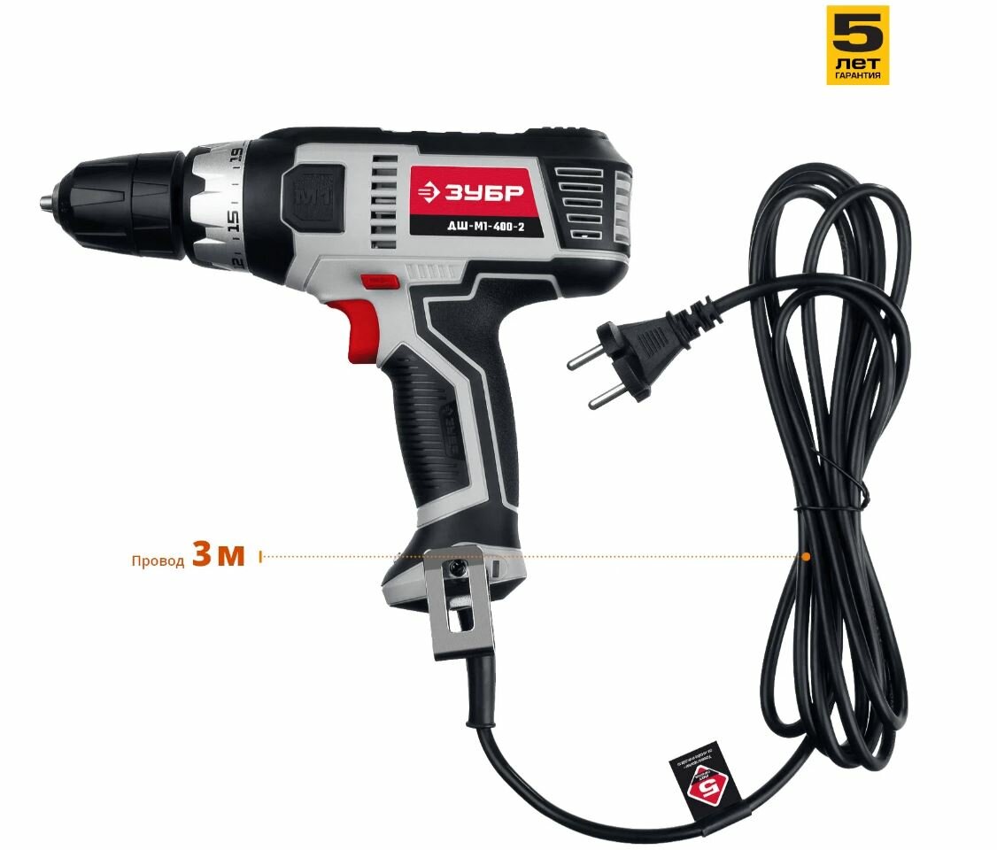 Сетевая двухскоростная дрель-шуруповёрт Зубр ДШ-М1-400-2