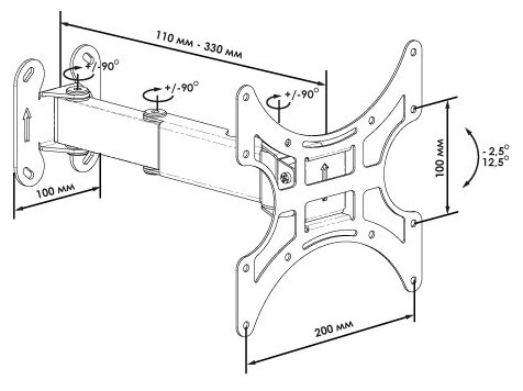Кронштейн для телевизора Trone LPS 51-11 с наклоном и поворотом до 25кг 17..23 дюйма VESA 100-200мм чёрный