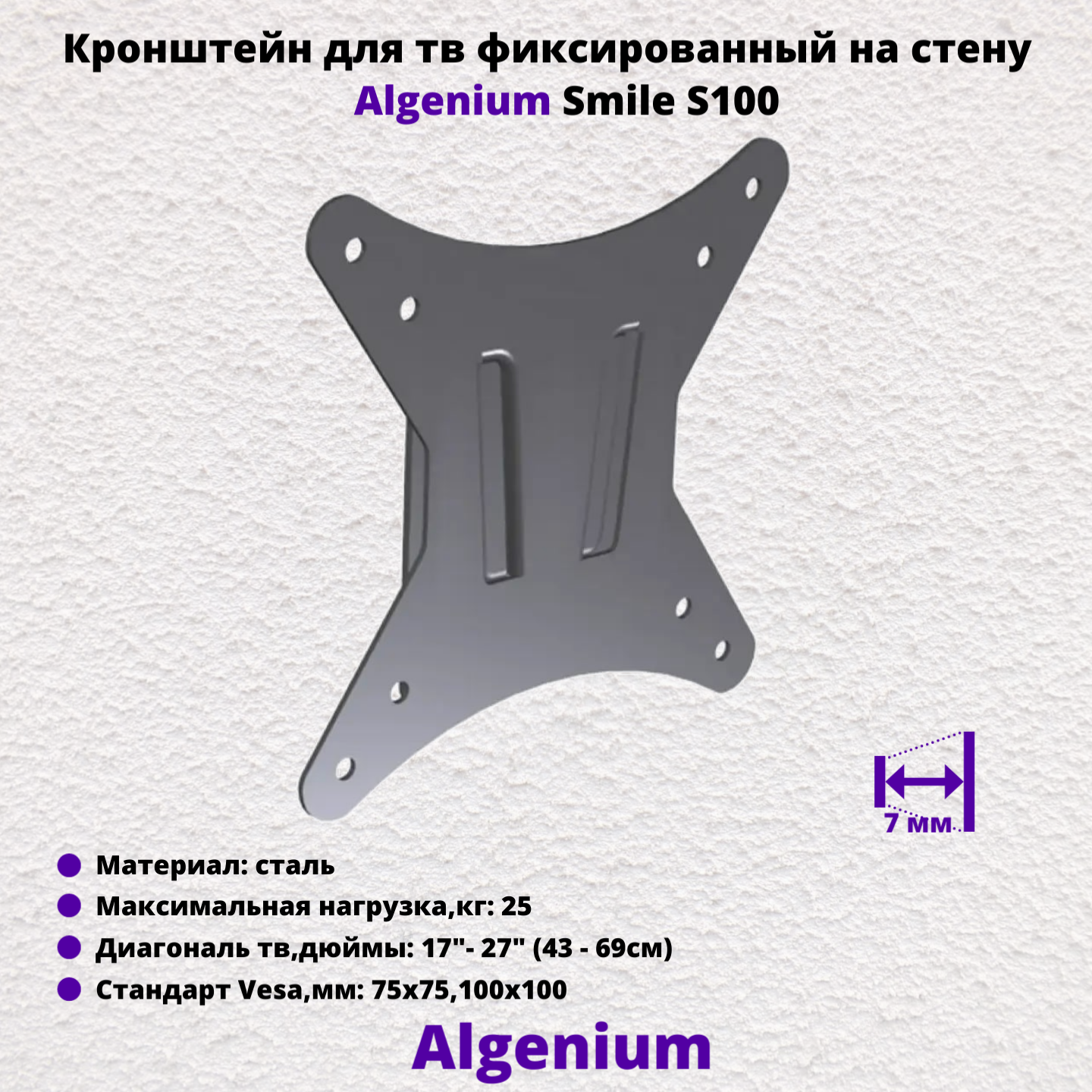 Подставка/крепление Кронштейн для телевизора на стену фиксированный с диагональю 17"-27" Algenium Smile S100,чёрный