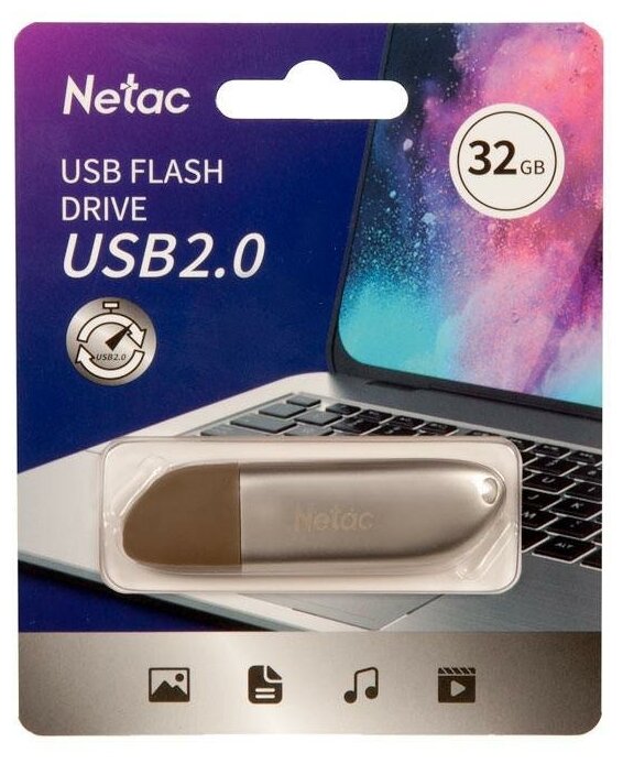 Флешка USB NETAC U352 32ГБ, USB2.0, серебристый [nt03u352n-032g-20pn]