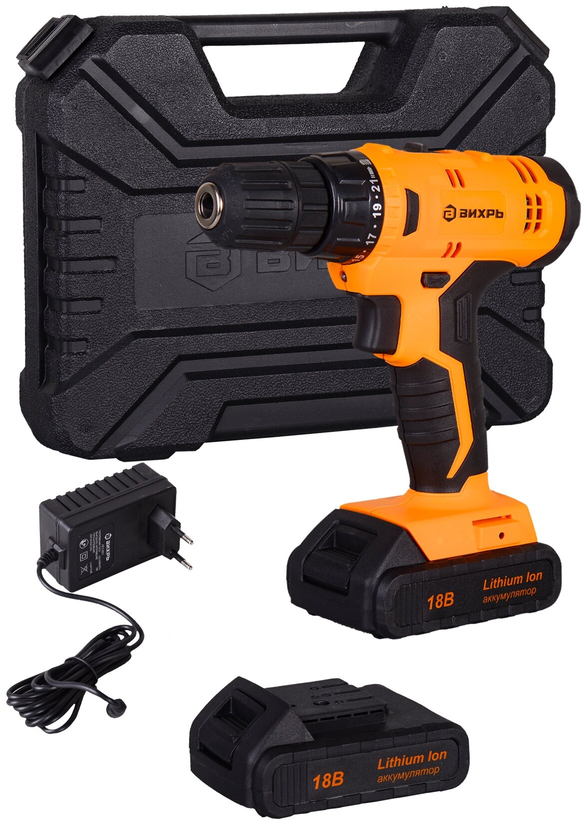 Дрель-шуруповерт"Вихрь" ДА-18Л-2КА, 18 В, 2x1.5 Ач, Li-Ion, 35 Нм, БЗП 10 мм Вихрь