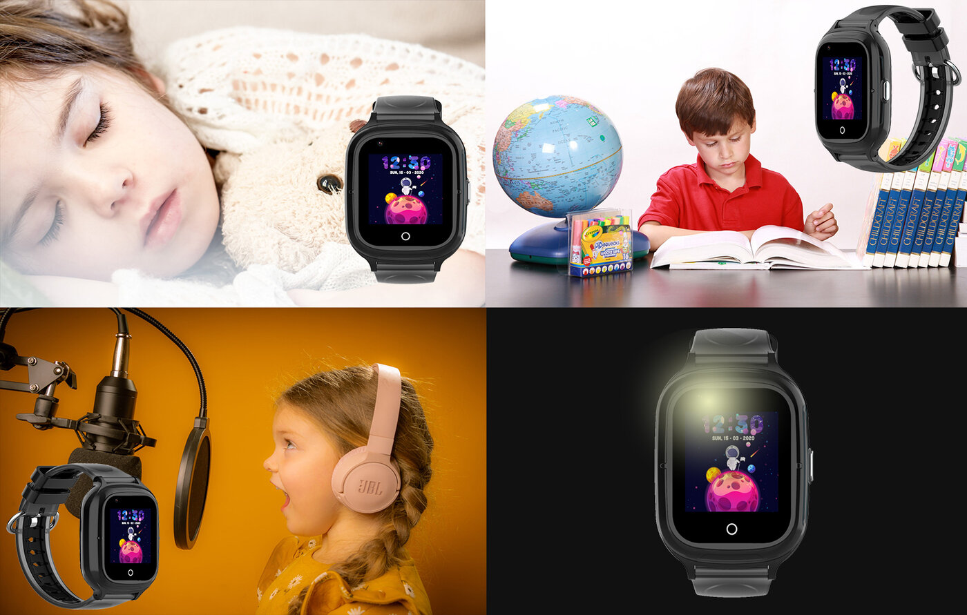 Детские смарт часы-телефон KT23 Wonlex водонепроницаемые черные с GPS, видеозвонком, виброзвонком, камерой и 4G для детей и подросктов Smart Baby Watch