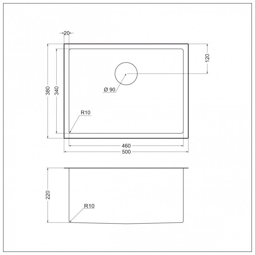 Лучшие цены. EMAR EMB-118, тип исполнения мойки одна чаша (одно-чашевая). Мойка имеет размеры 500 x 380 мм, R5 внешний радиус закругления и R10 с внутренней стороны. Мойка EMAR EMB-118 мойка из нержавеющей стали с различной поверхностью PVD покрытия. В карточке товара можно выбрать вариант товара. Вес в коробке с комплектующими: 6 кг, вес нетто: 5 кг. Объем: 0,08 cbm. Размер слива 114 мм. Мойка сварная, универсального монтажа. Толщина стали: 1.2 мм. Глубина: 220 мм. Сталь мойки: 304 марки. В коробке 1 штука. Магазины в вашем городе.