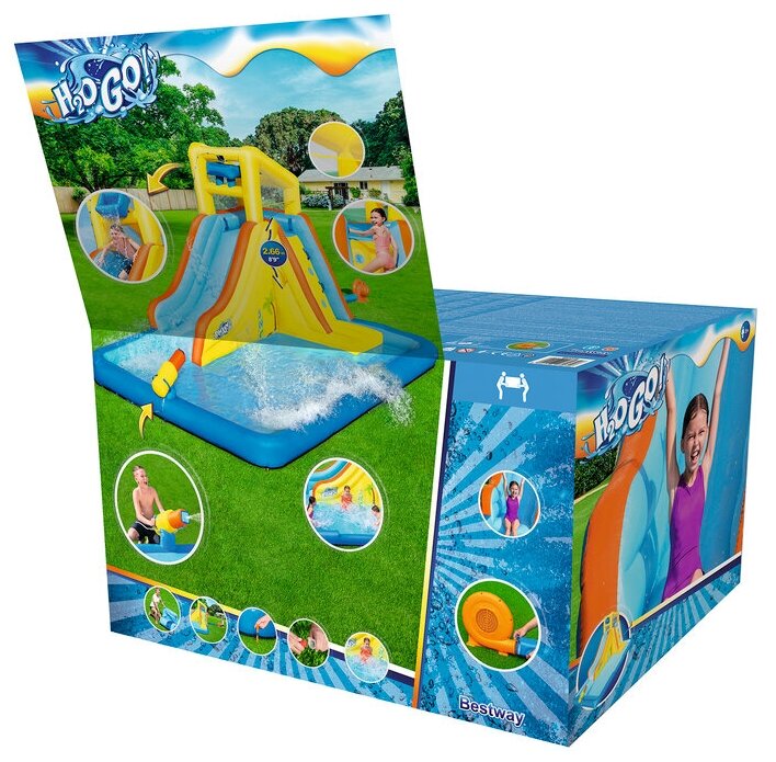 Лучшие цены. Надувной аквапарк «Банановый пляж» изготовлен из прочного разноцветного полимерного материала. Быстрая и простая сборка. Вентилятор надувает изделие за пару минут. На вершине башни для безопасности есть боковые стенки из сетки. Отличный большой бассейн доставит удовольствие играющим и охладит в жаркий летний день. Точечный бластер добавит веселья всей компании. Характеристики Артикул: 53349 BW Производитель: Bestway, Китай. Размеры: 448x311x266см Возраст: 5-10 лет. Магазины в вашем городе.