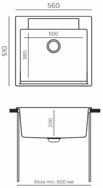 Мойка POLYGRAN, гранит-мрамор, ARGO-560, (510*560*200 мм), черный, сифон и сливная арматура