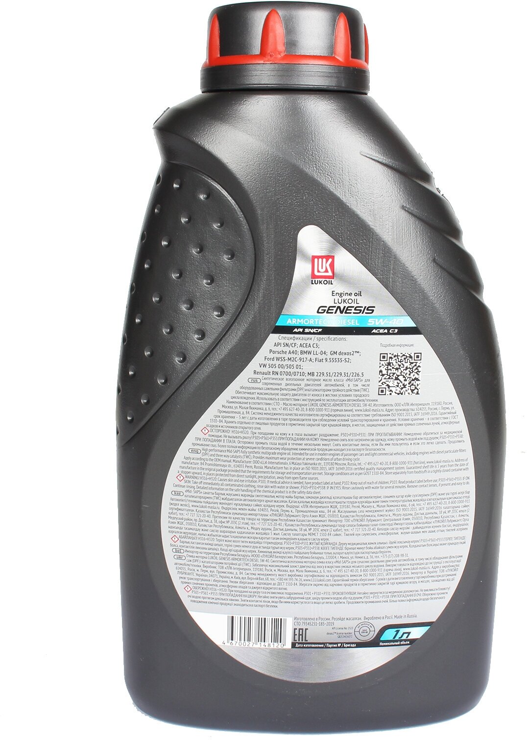 масло лукойл 5w40 genesis armortech diesel api sn acea c3 1л син