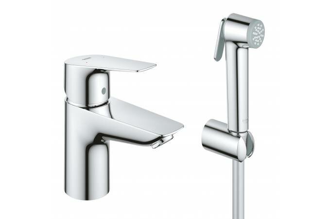 Набор GROHE BauEdge: смеситель для раковины и гигиенический душ с настенным держателем, хром (23757001)