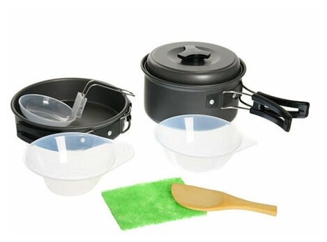 Лучшие цены. Набор посуды походный Cooking Set SY-200 Компактный и лёгкий набор посуды из анодированного алюминия на 1-2 персоны, включающий в себя всё что необходимо туристам для приготовления пищи на природе. Данный комплект идеален для использования с портативными туристическими газовыми плитами. Набор туристической посуды Cooking Set 200 - это комплект посуды включающий в себя: - Небольшой котелок объёмом 0,95 литра, со складными ручками и крышкой. Магазины в вашем городе.