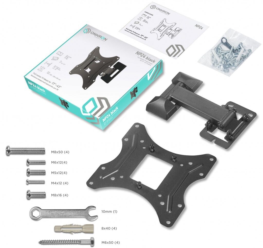 Кронштейн для телевизора Onkron NP24 настенный, наклонно-поворотный, 17-43 дюйма, черный