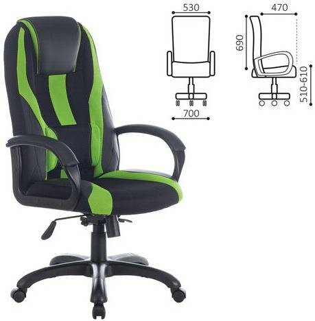Кресло компьютерное BRABIX PREMIUM "Rapid GM-102", нагрузка 180 кг, экокожа/ткань, черное/зеленое, 532419, GM-102_532419 - 1 шт.
