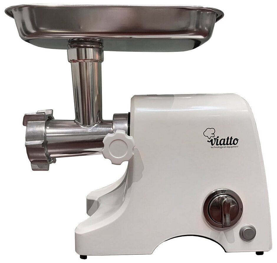 Лучшие цены. Мясорубка VIATTO VA-MG600W предназначена для быстрой переработки мяса, рыбы и других продуктов для дальнейшего приготовления большого ассортимента блюд. Для предотвращения перегрузок двигателя, возникающих из-за наматывания жил на ось шнека, модель оборудована функцией реверса. Корпус и шнек изготовлены из алюминия, режущий узел – из нержавеющей стали. Рекомендуется к применению на предприятиях общественного питания среднего и крупного форматов, а также на различных пищевых производствах. Магазины в вашем городе.