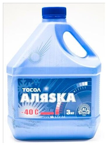Лучшие цены. Класс жидкости по VAG: G11; Цвет: синий; Температура замерзания: -40°C; Объем: 3кг; Тосол Аляска А-40М, универсальная всесезонная охлаждающая жидкость для автомобилей. Предназначено для использования в системах охлаждения двигателей внутреннего сгорания зарубежного производства, а также для современных отечественных автомобилей. Соответствует международным стандартам ASTM D 3306, SAE J 1034. Магазины в вашем городе.