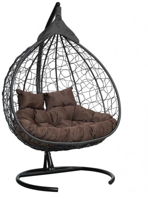 Садовая качель Подвесное кресло кокон двухместное LAURA OUTDOOR FISHT черное + коричневая подушка (полиэстер)