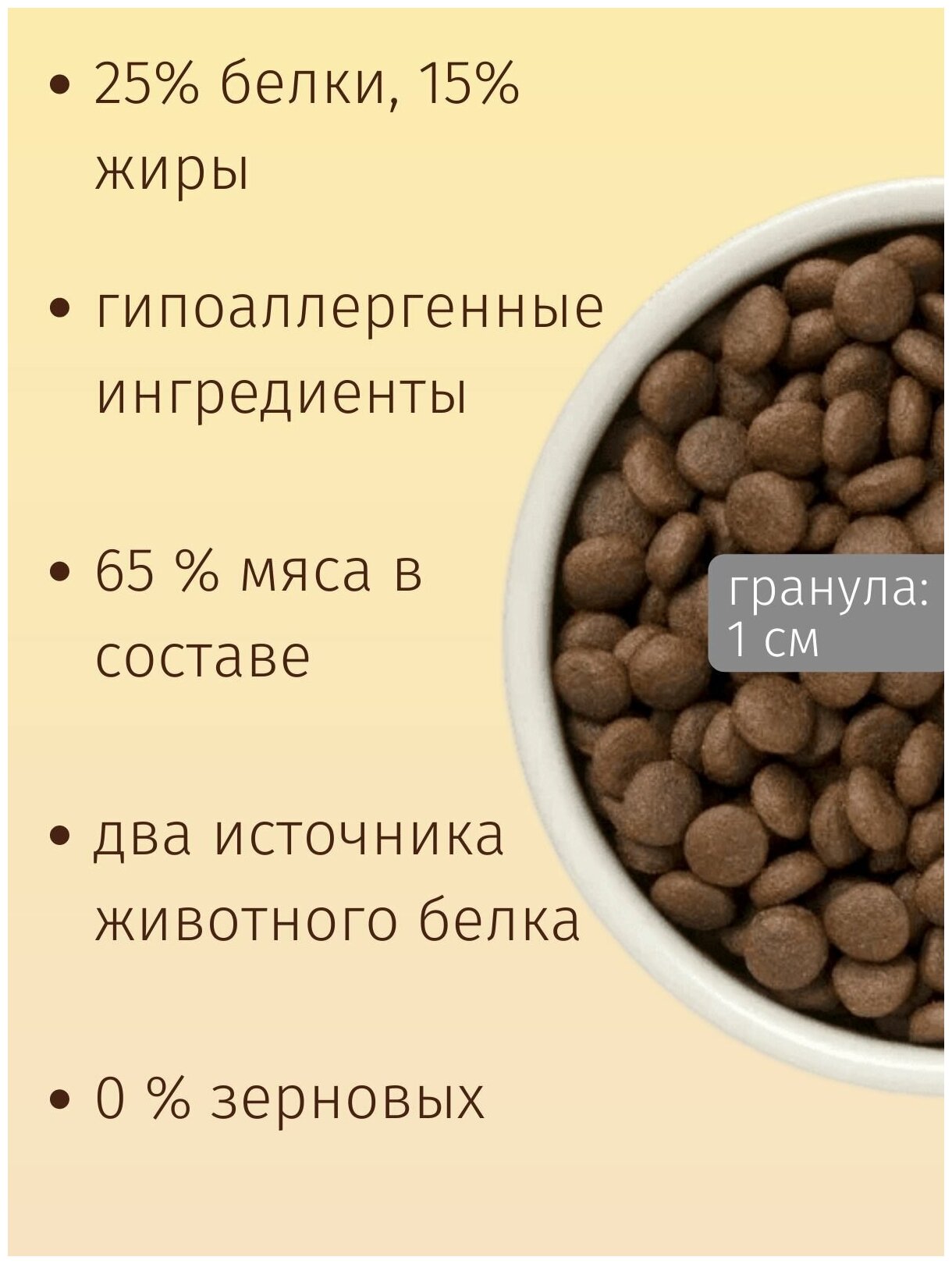 Лучшие цены. Для собак всех пород от 1 года. Превосходная беззерновая формула является отличной альтернативой зерновым кормам и идеально подходит питомцам с чувствительным пищеварением или склонным к аллергии на зерновые. 65% мяса в составе 0% зерновых Два источника животного белка Гипоаллергенные ингредиенты 25% белки, 15% жиры Не содержит: зерновые, свеклу, горох, субпродукты, яйца, курицу, куриный жир, соль, сахар, красители, ароматизаторы, сою и ГМО. Магазины в вашем городе.