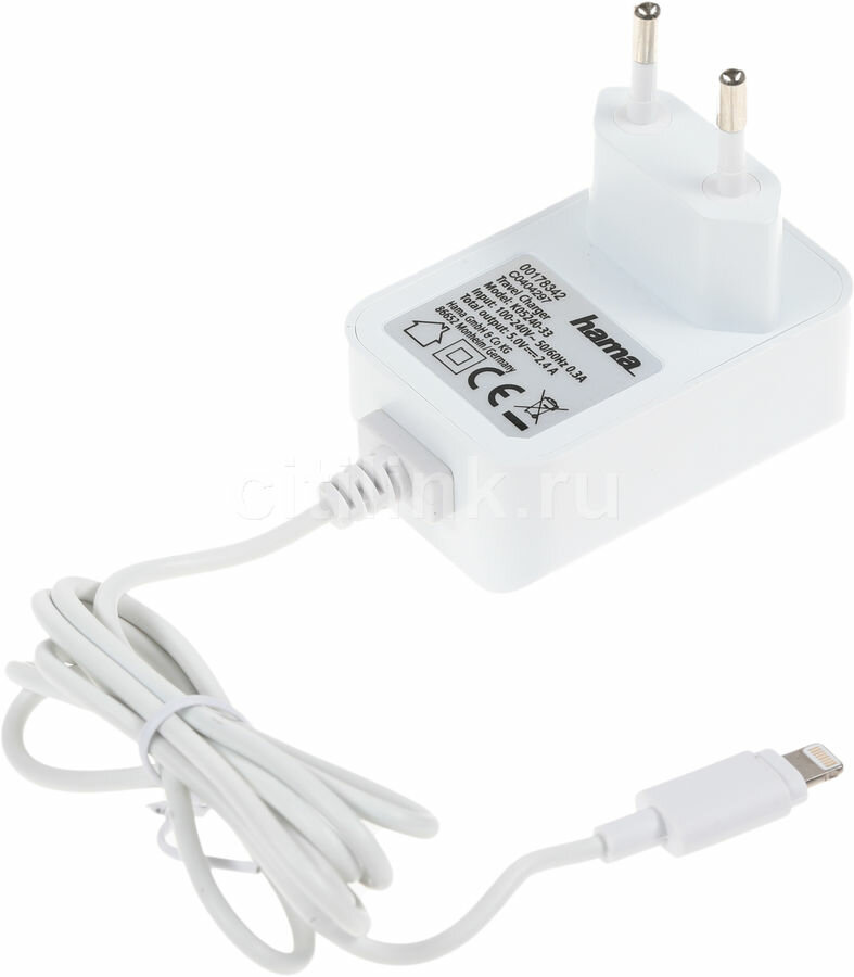 Зарядки для гаджетов Сетевое зар./устр. Hama H-178342 2.4A для Apple белый (00178342)
