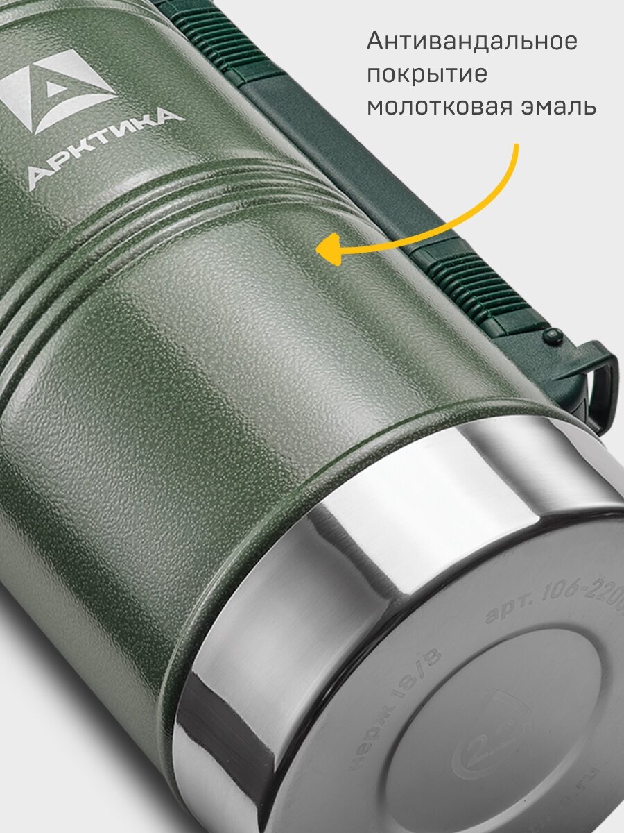 Термос Арктика 106-2200Р вакуумный, 2200мл, молотковая эмаль зеленый 4-23203