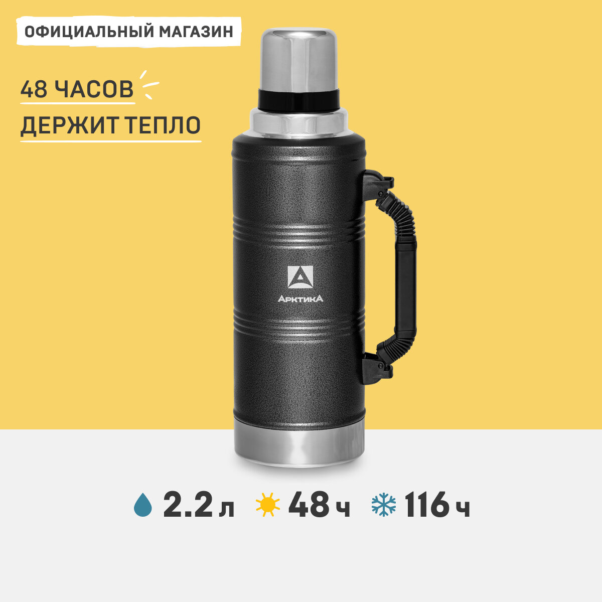 Термос "Арктика. Уазик", 1.25 л, с ручкой, сохраняет тепло 40 ч, черный 4 584 ₽ Подробнее