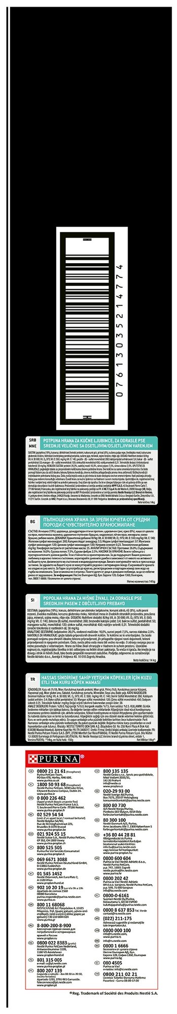 Сухой корм PRO PLAN® для взрослых собак средних пород с чувствительным пищеварением, с высоким содержанием ягненка, SENSITIVE DIGESTION, 7 кг