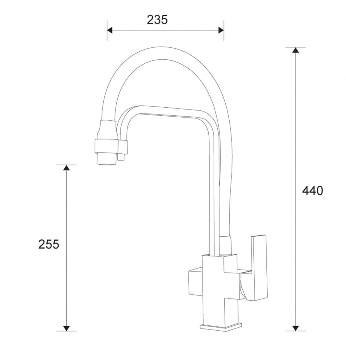 Смеситель для кухни под фильтр ZorG ZR 341-6 YF, хром полированный, гибкий черный излив, квадратный, защита от брызг