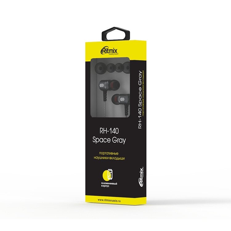 Наушники Ritmix RH-140 Space grey (внутриканальные, серые, 20Гц-20кГц, 16Ом, 92 дБ/мВт, 3.5мм, кабель 1,2 м)
