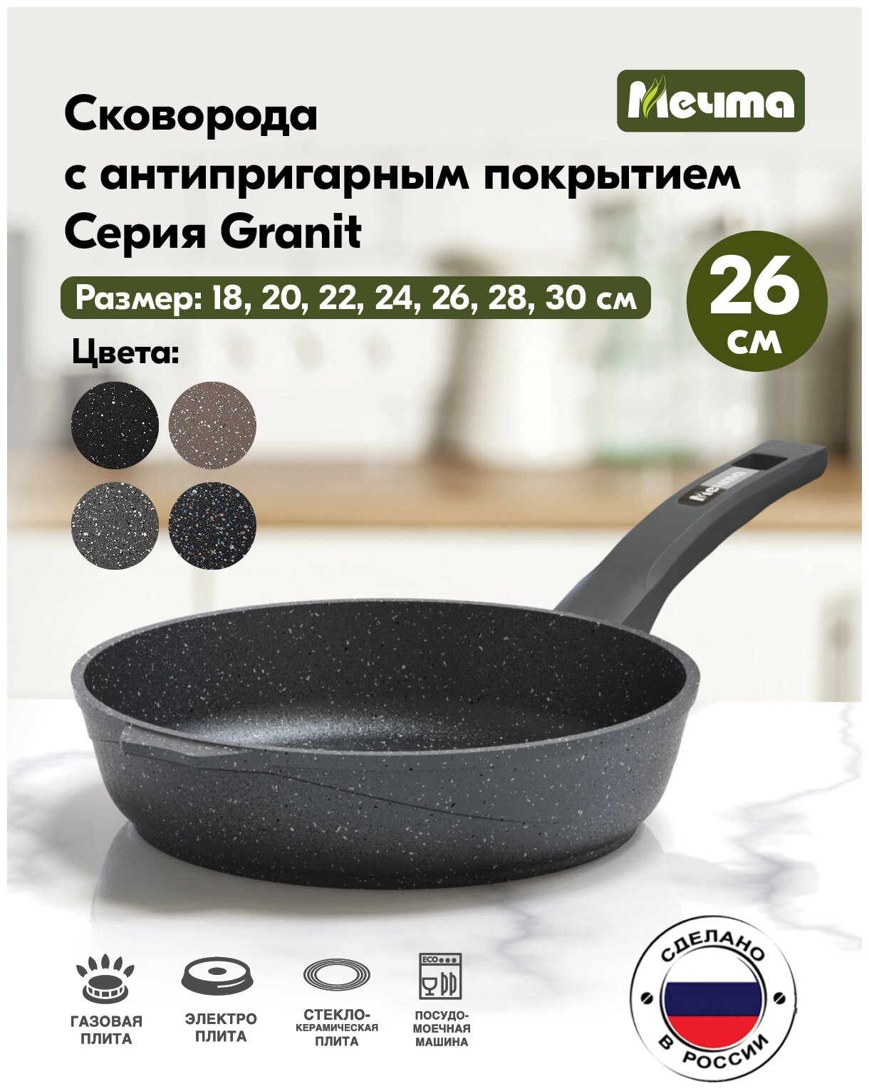Сковорода "Мечта" 26см Гранит с антипригарным покрытием с несъемной ручкой, можно мыть в посудомоечной машине