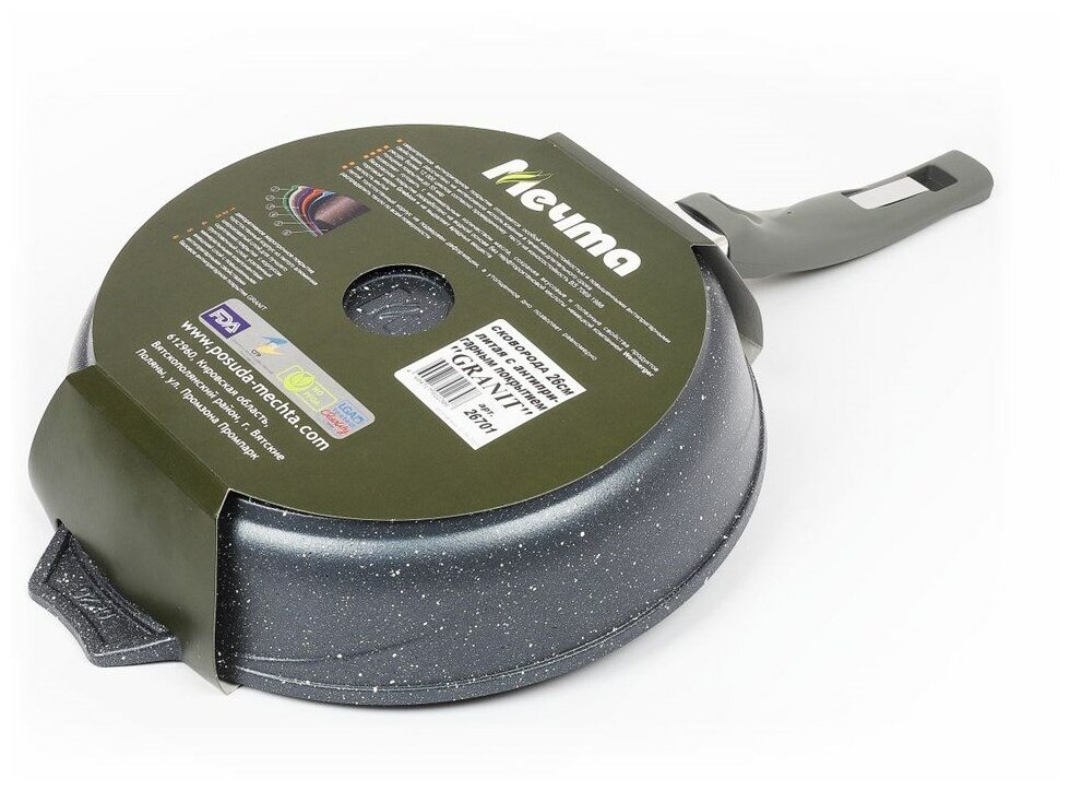 Сковорода Мечта 22 см Гранит с антипригарным покрытием с несъемной ручкой, НЕ индукционная 1 450 ₽ Подробнее