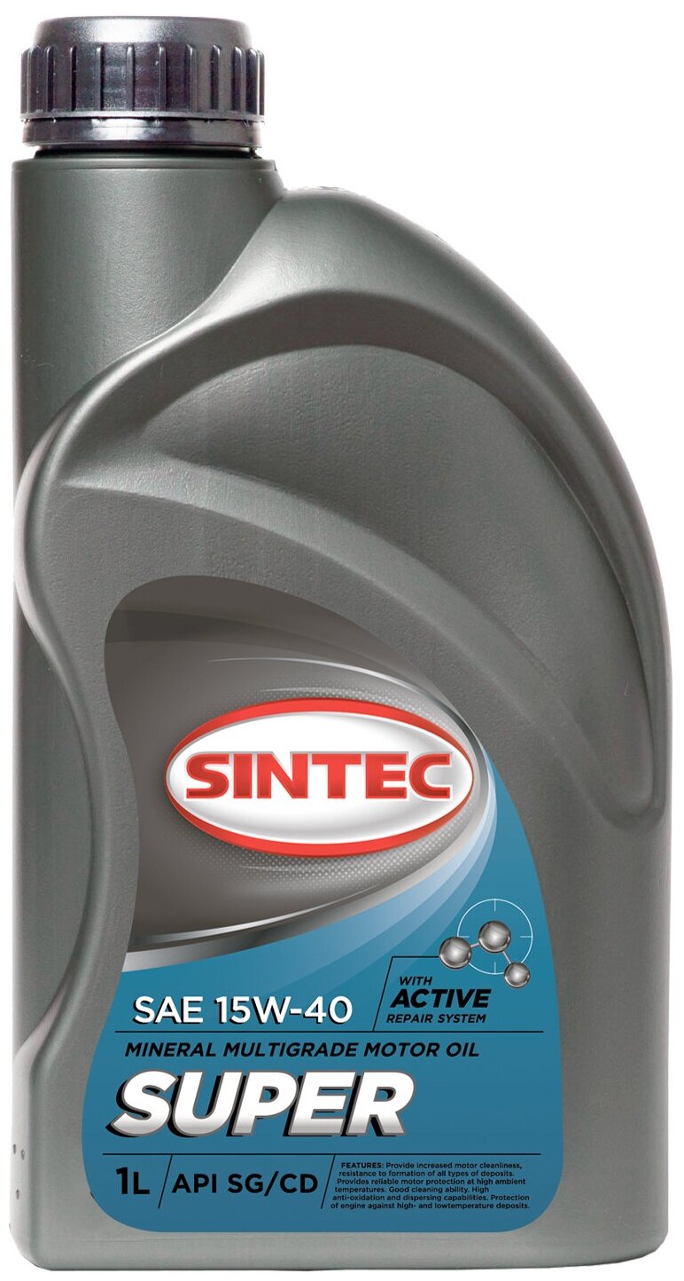 Лучшие цены. Всесезонное минеральное моторное масло SINTEC супер 15W-40 производится с использованием высокоочищенных базовых масел и сбалансированного пакета присадок. Предназначено для применения в бензиновых и дизельных двигателях современных легковых и грузовых автомобилей отечественного и зарубежного производства. Обладает увеличенным сроком службы, сниженным расходом масла на «угар» и улучшенными антикоррозионными свойствами. Магазины в вашем городе.