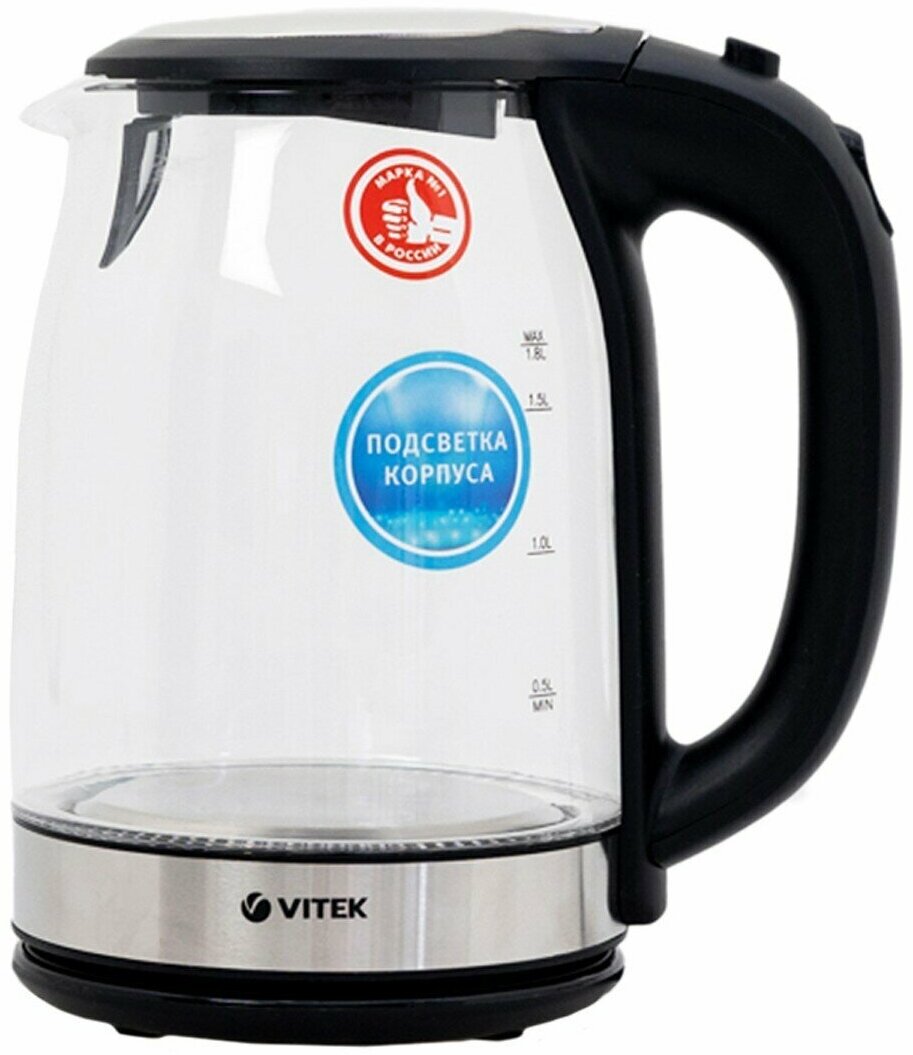 Чайник Электрический 1.8Л 2200ВТ Диск Стекло Подсветка Нерж/черн Vitek VT-7095