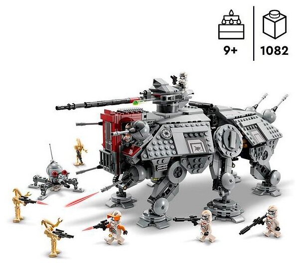 Лучшие цены. Отправляйтесь в мир Звездных войн с наборами LEGO Star Wars. С помощью этой комплексной сборки дети могут собрать шагоход AT-TE LEGO Star Wars из множества кубиков и отправиться в битву при Утепо. Здесь можно воссоздать известные из «Мести ситхов» остросюжетные сцены. Здесь скрыто множество функций. Бластерная пушка вращается на 360° и оснащена двойными шипометами, съемной кабиной для минифигурок и двумя детализированными кабинами, в которых в общей сложности могут разместиться семь минифигурок LEGO. Магазины в вашем городе.