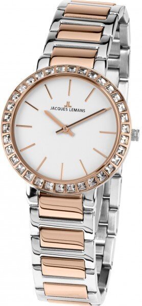 Лучшие цены. Наручные часы Jacques Lemans 1-1843B Артикул 1-1843B Коллекция Classic Кварцевые часы в корпусе из высококачественной нержавеющей стали с PVD-покрытием в цвете розовое золото. Диаметр корпуса 32 мм (диаметр, без учета заводной головки). На безеле надежно закреплены сияющие кристаллы Swarovski. Часы оснащены японским кварцевым механизмом TMI. Водозащита 50 метров (5 атм). Можно мыть руки / часы защищены от сильного проливного дождя. В модели установлено ударопрочное минеральное стекло Crystex. Магазины в вашем городе.
